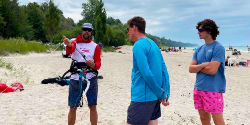 Introduction to the gear, wind window and weather. We start with a 2 line trainer kite and advance to flying a four line inflatable kite with a harness.